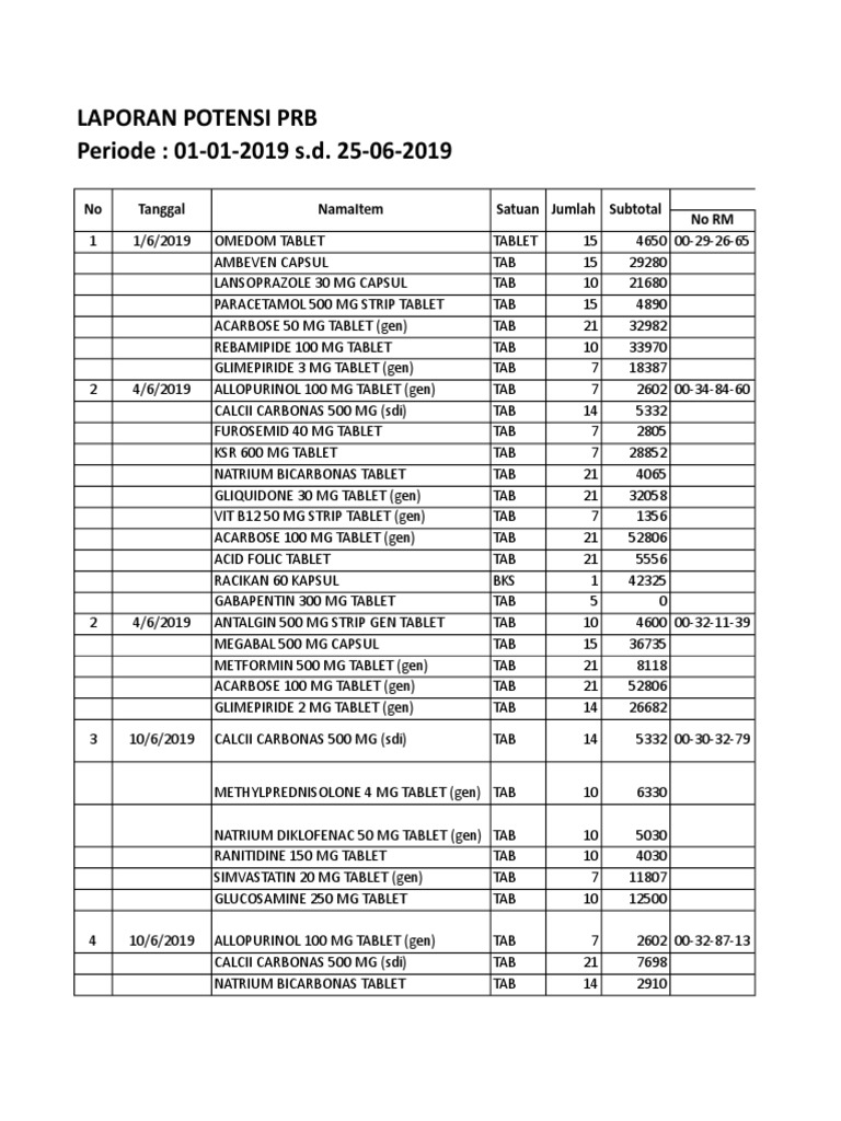 Data Pasien Potensi Prb Jan Juni 2019 Functional Group Clinical Medicine